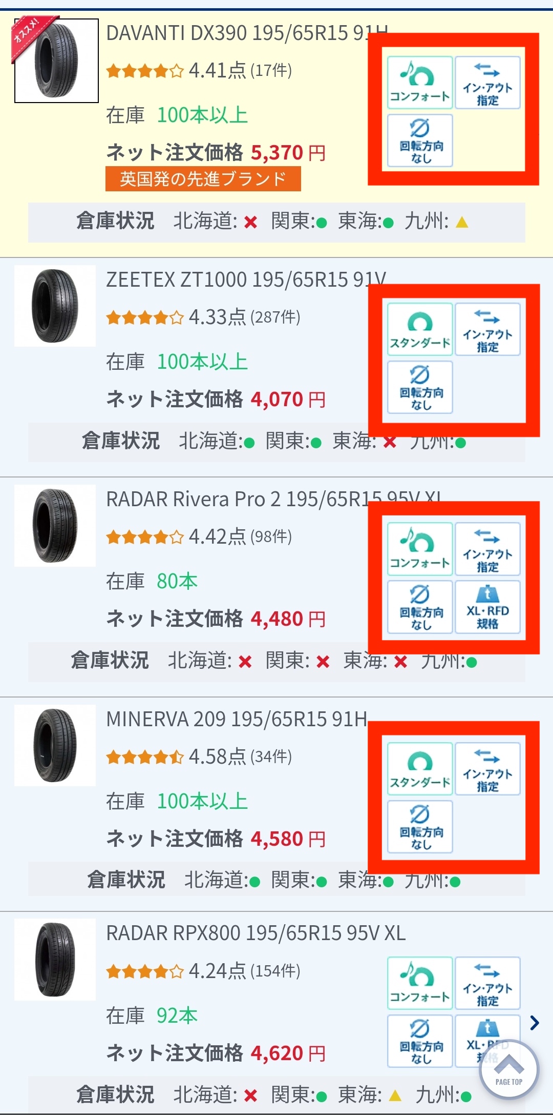 価格が安い。自分自身それほどタイヤにこだわりはないので、送料を含めても価格が安いのは魅力でした。輸入車でタイヤサイズが特殊ではありましたが、安いものから高いものまで選択肢の幅が広いことも魅力できた。